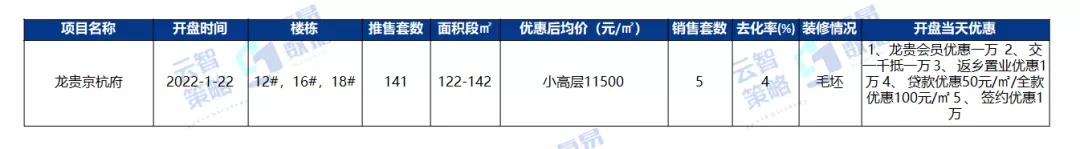 本周龙贵京杭府项目加推小高层,共计推售141套,去化率4%。