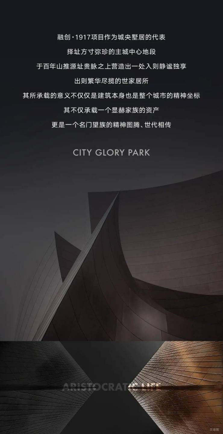 融创·1917项目作为城央墅居的代表,择址方寸弥珍的主城中心地段。于百年山推源址贵脉之上营造出一处入则静谧独享,出则繁华尽揽的世家居所。其所承载的意义不仅仅是建筑本身也是整个城市的精神坐标,其不仅承载一个显赫家族的资产,更是一个名门望族的精神图