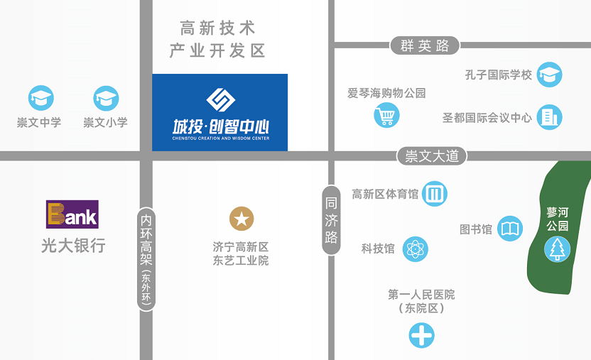 城投·创智中心踞守济宁排名前列主轴崇文大道,占位高新核芯,已然成为高新封面,擎领城市发展,见证城市向上的力量。