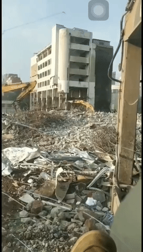 济宁古槐路拆迁、封路了原任城公安大楼被爆破拆除瞬间倒下