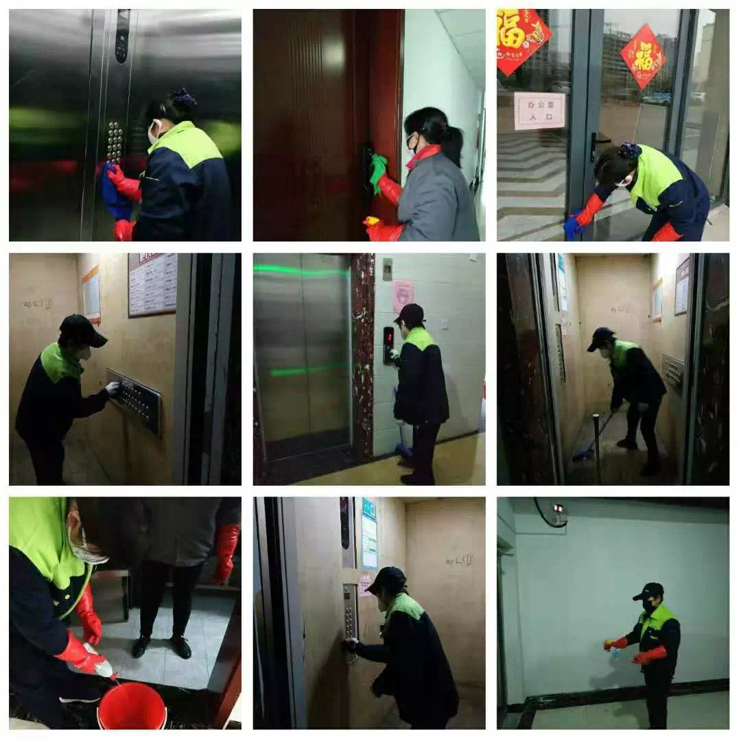 物业人员对电梯按键、轿厢、安全通道、单元楼门把手、垃圾堆放区、公共厕所等公共区域进行每天两次的全面消杀,加强卫生防护。