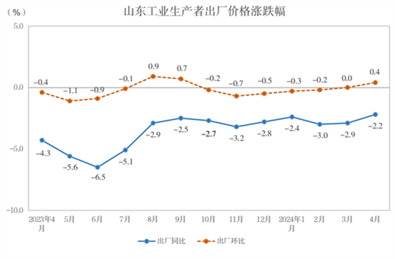 4月份山东CPI同比上涨0.1%,PPI同比下降2.2%