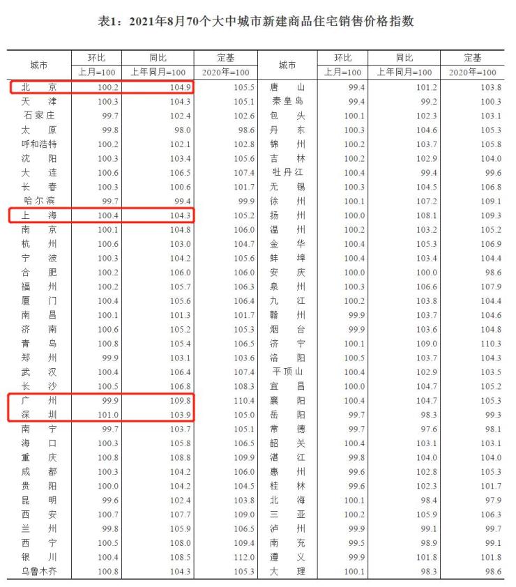 据国家统计局测算,8月份,一线城市新建商品住宅销售价格环比上涨0.3%,涨幅比上月回落0.1个百分点;同比上涨5.7%,涨幅比上月回落0.3个百分点。其中,新建商品住宅销售价格上涨城市数量46个,较上月减少5个;持平城市4个,较上月增加1个;下跌城市20个,较上月增加4个。