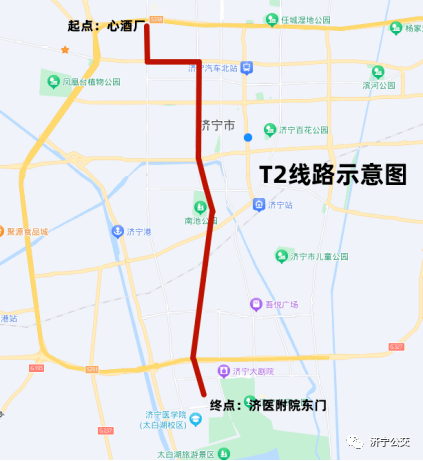济宁公交集团于2023年9月18日试运营T1、T2线路,现面向社会征求线路运营时间及沿途停靠站点的优化调整意见,具体线路走向及示意图如下。