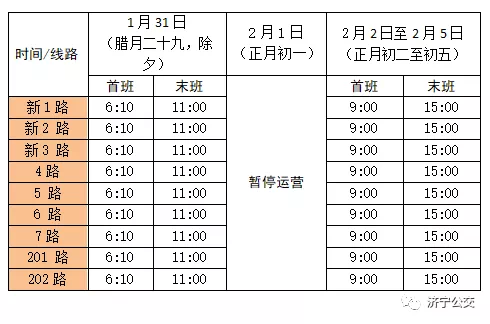 一、1月31日(腊月二十九,除夕)上午发车时间不变,11:00发末班车,下午暂停运营;