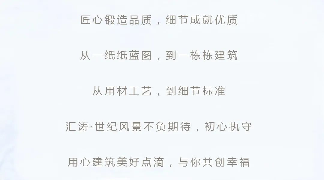 匠心锻造品质,细节成就优质。从一纸纸蓝图,到一栋栋建筑。从用材工艺,到细节标准。汇涛·世纪风景不负期待,初心执守。用心建筑美好点滴,与你共创幸福。