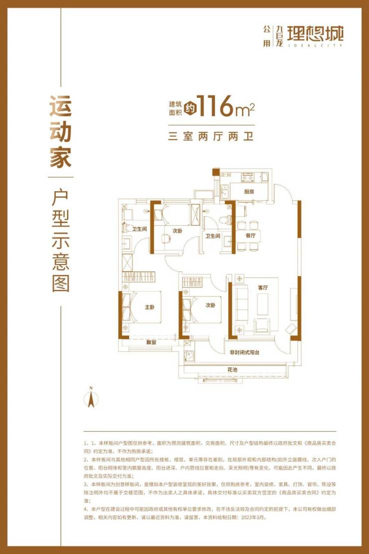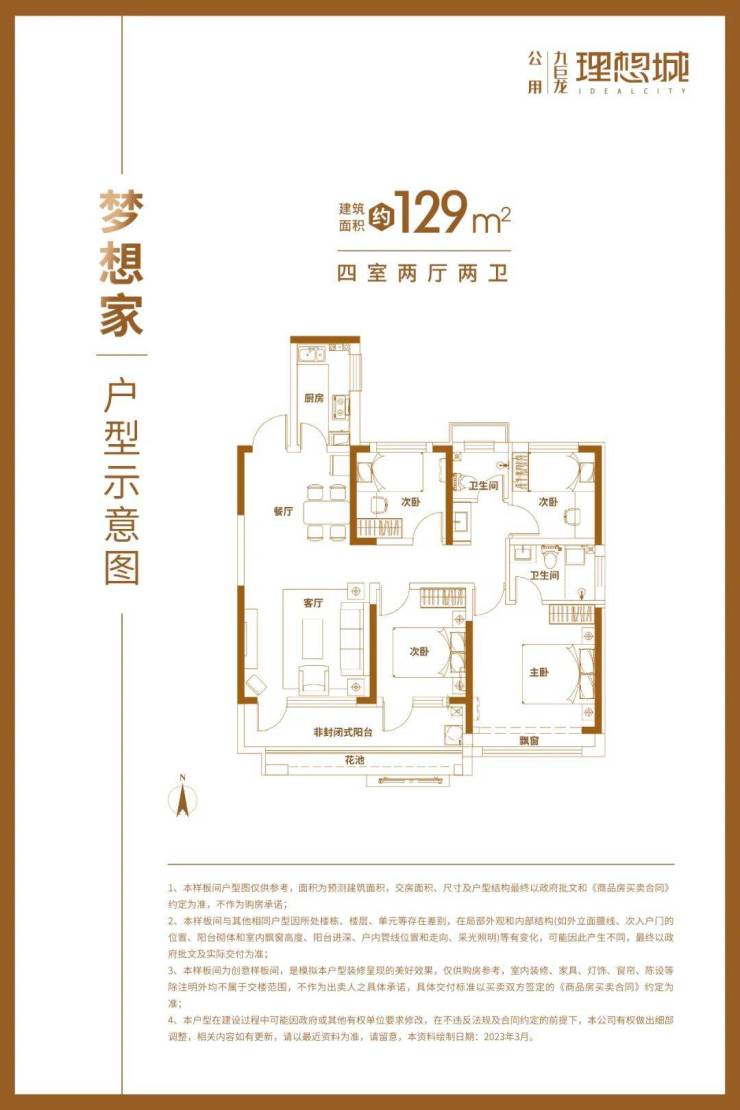 九巨龙理想城本次共推出116㎡、129㎡两款户型样板。