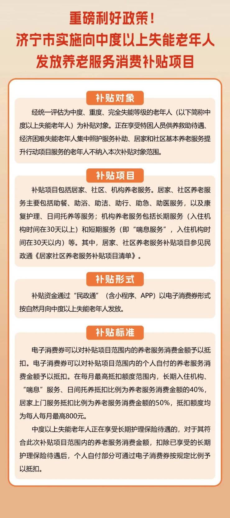 一图解读丨济宁市实施向中度以上失能老年人发放养老服务消费补贴项目