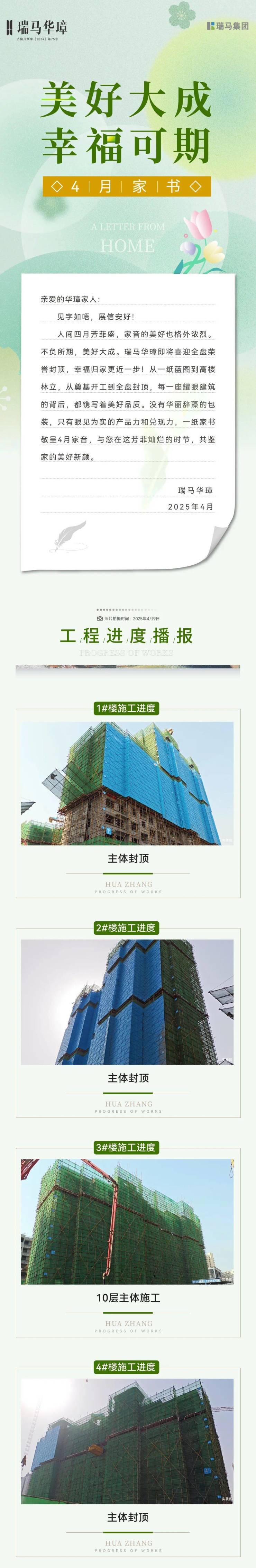 春风得意,未来可期。傲然风骨已成,家的轮廓愈发清晰。美好雕琢继续,奏响理想生活华章。瑞马华璋时刻铭记精工筑家的使命,步履不停,析毫剖厘,精雕细琢,只为不负每一位业主的殷切期望,每月定期敬呈家讯,共鉴幸福向往。、
