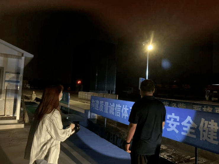 6月1日晚,市能源局四级调研员赵月建带队对鲁西煤矿扬尘管控工作进行夜查。