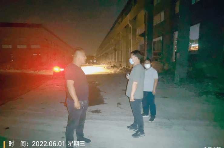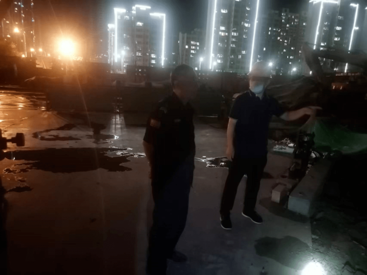 6月1日晚,市住建局副局长徐茂盛带队夜查建筑工地扬尘治理工作。