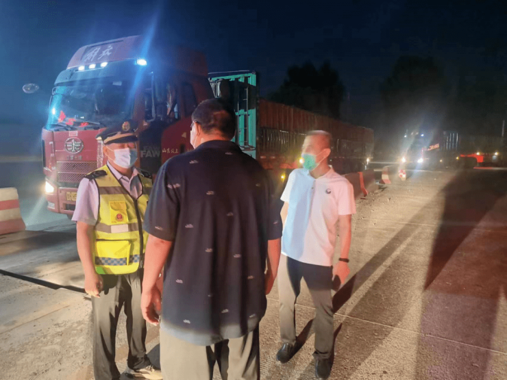 6月1日晚,市公安局交警支队四级高级警长程海带队夜查主城区柴油车管控、重点工程施工车辆通行等大气污染防治工作。