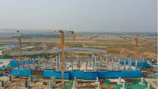 济宁新机场完成航站楼主体结构,屋面钢网架结构完成顶升70%