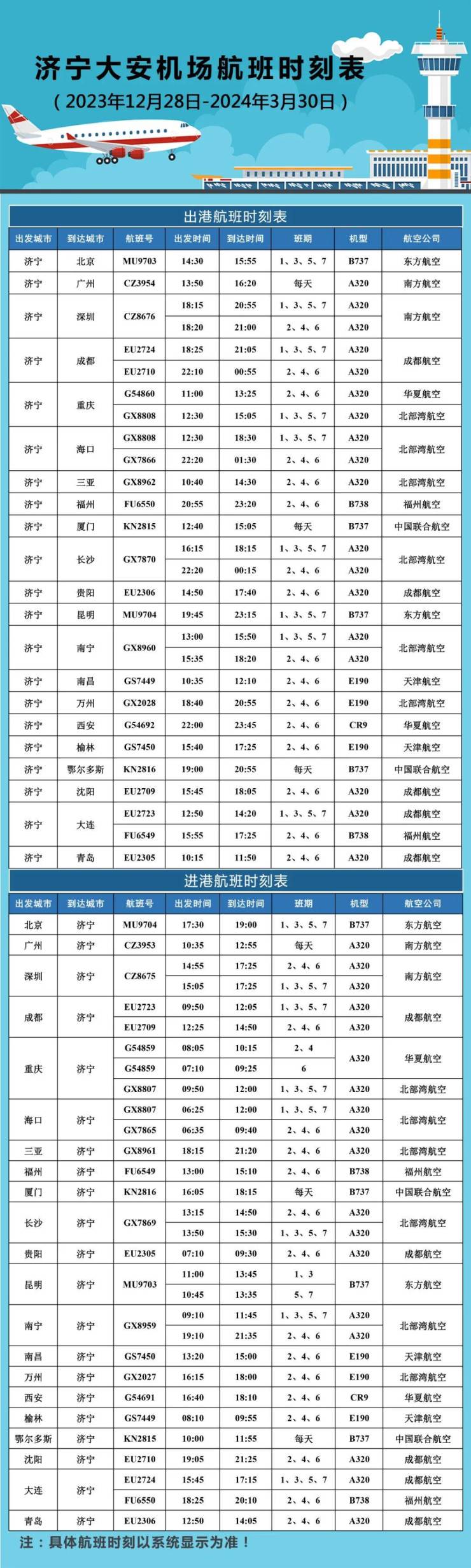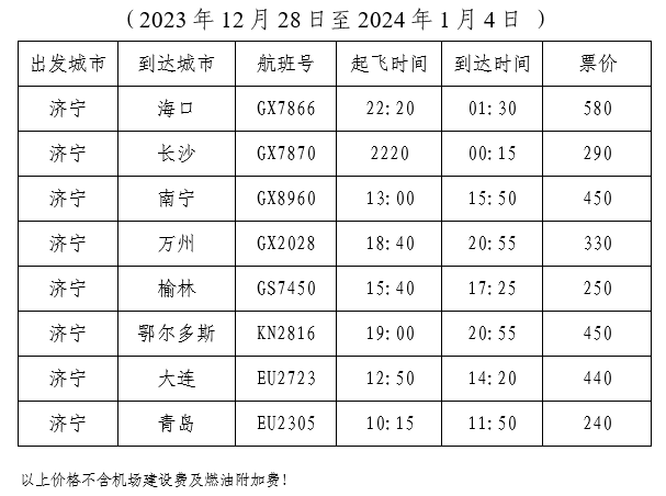 济宁大安机场航线航班情况