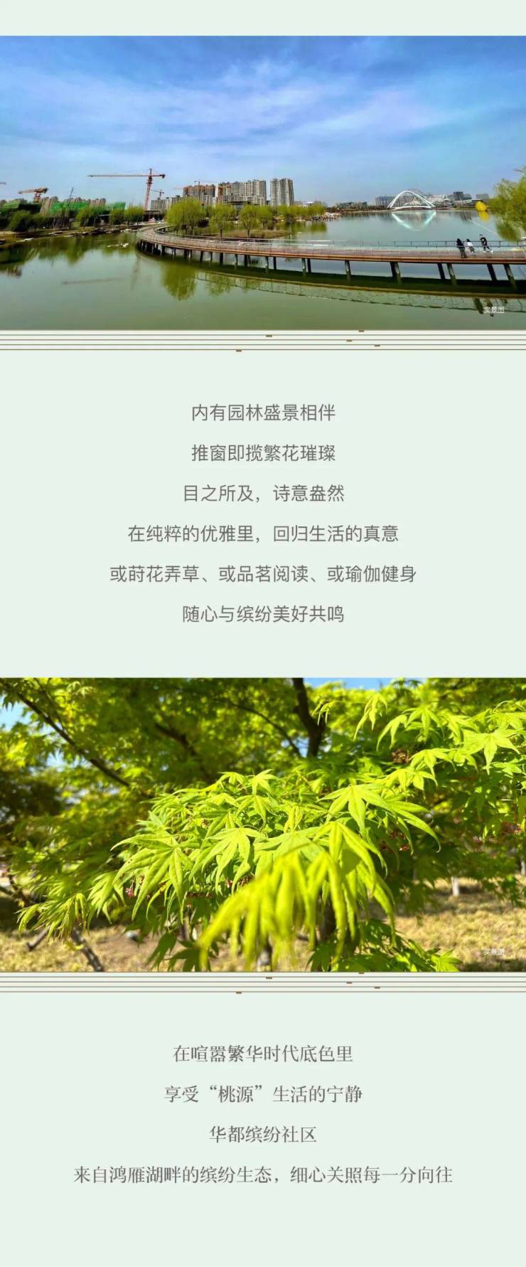 华都国滨府·臻悦,外与鸿雁湖公园为邻,临河而居、万物萌动、生长不息,在自然馈赠的惬意时光里。呼吸清新鲜氧,尽享公园风华。内有园林盛景相伴,推窗即揽繁花璀璨。目之所及,诗意盎然。在纯粹的优雅里,回归生活的真意或蔚花弄草、或品茗阅读、或瑜伽健身