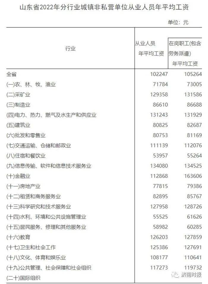 近日,山东省统计局公布山东省2022年分行业城镇非私营单位平均工资,具体如下: