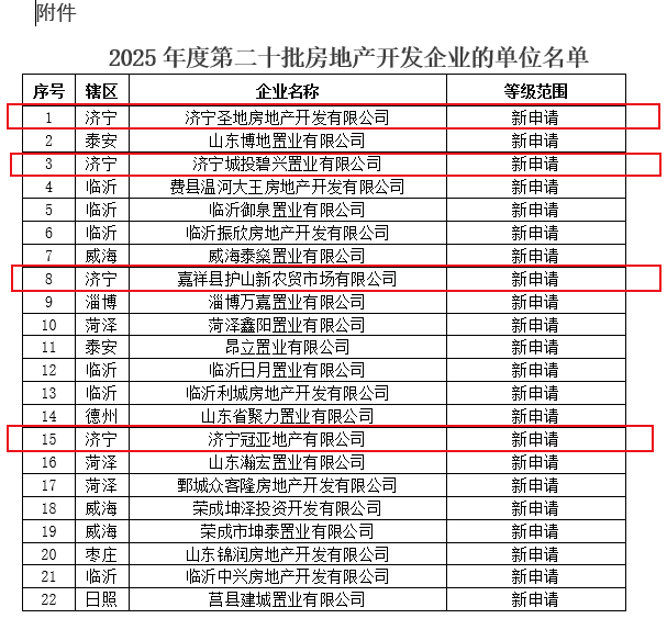 济宁4家!2025年度第二十批房地产开发企业资质名单发布