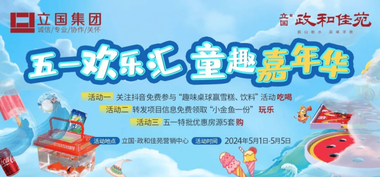 5月1日至5日假期期间,在立国·政和佳苑营销中心内开展了一场“五一欢乐汇,童趣嘉年华”的亲子活动。这里有趣味的网红桌球小游戏,通过小游戏可以获得甜美的雪糕和美味的饮品、可乐、雪碧等。