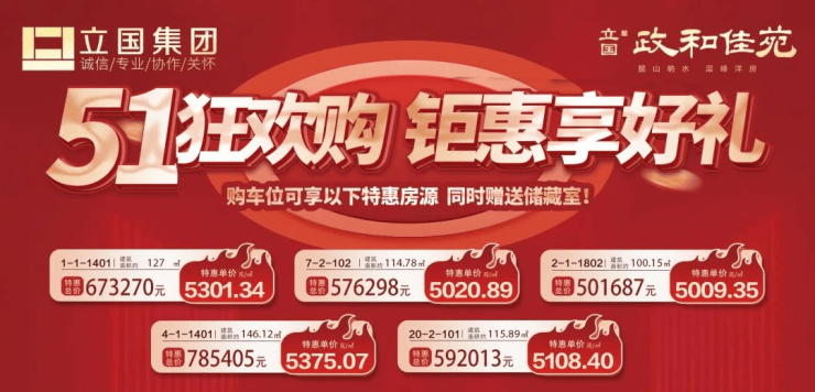 另外,立国·政和佳苑还给准备在五一假期安家置业的宝宝们,准备了假期特惠房源,不仅在价格上做到了足足的优惠,同时还推出了“买车位赠送储藏室”的优惠政策,让广大想要购房的宝宝们享受到真真切切的实惠。