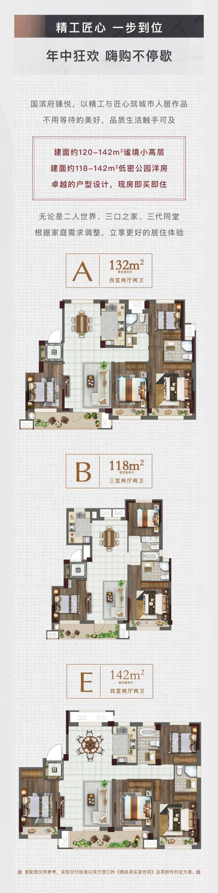 华都国滨府·臻悦,以精工与匠心筑城市人居作品,不用等待的美好,品质生活触手可及。建面约120-142㎡谧境小高层,建面约118-142㎡低密公园洋房,卓越的户型设计,现房即买即住。根据家庭需求调整,立享更好的居住体验。