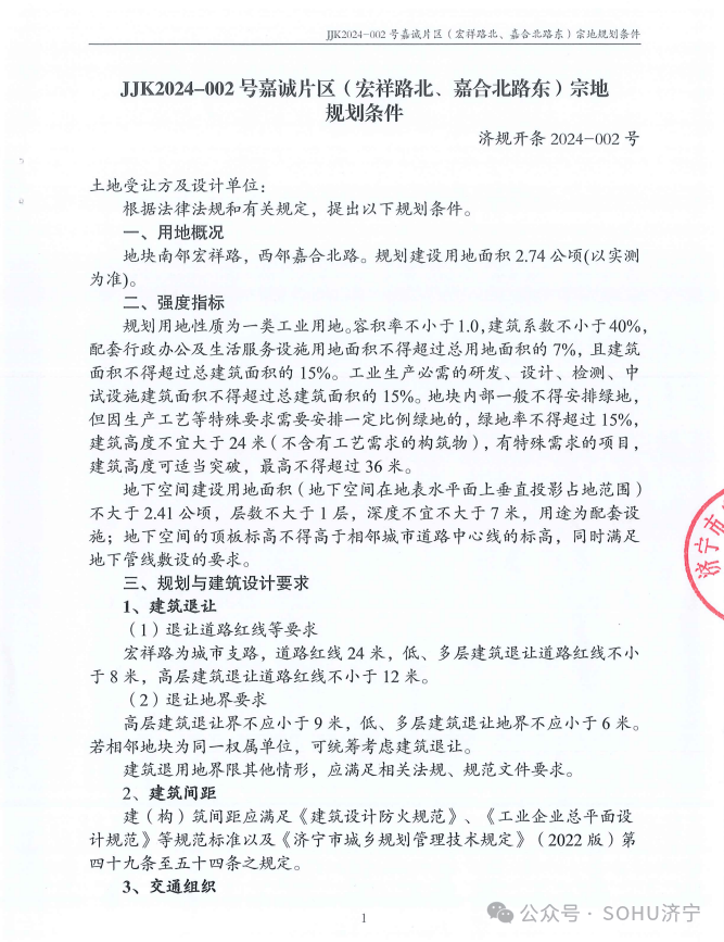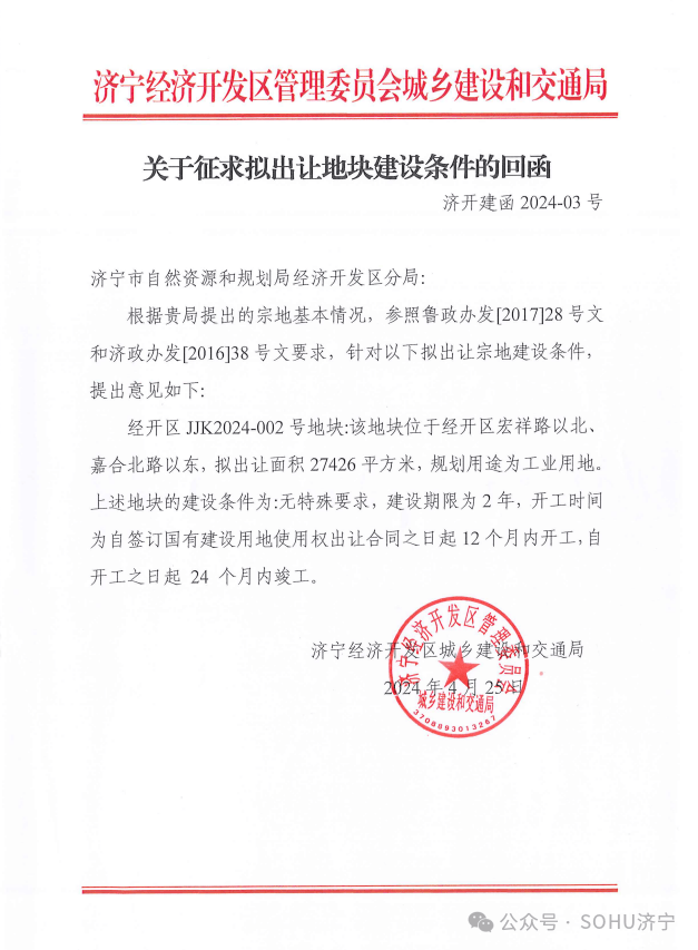 占地约41亩!济宁经开区嘉诚片区1宗土地成功出让