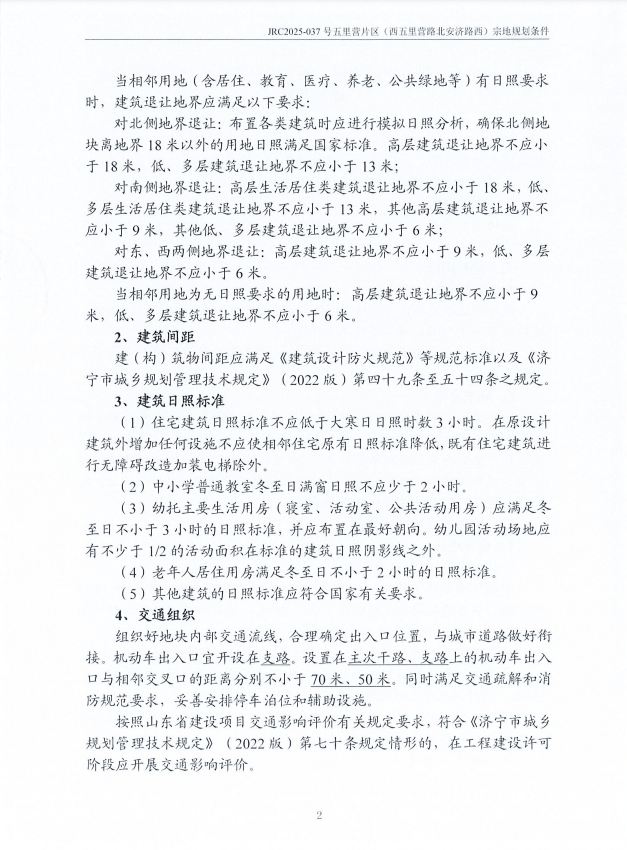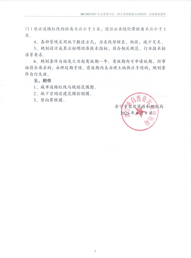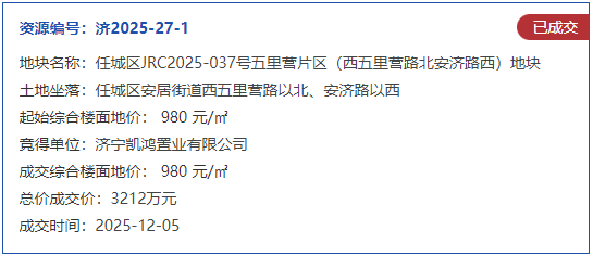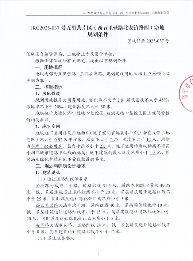 地块一:任城区JRC2025-037号五里营片区(西五里营路北安济路西)地块【济宁凯鸿置业有限公司竞得】