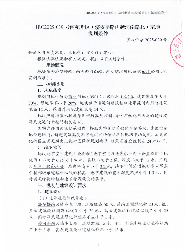 地块二:任城区JRC2025-039号南苑片区(济安桥路西越河南路北)地块【济宁济运里文旅发展有限公司竞得】