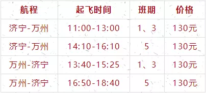出行提示:低至130元!济宁机场往返万州特价航线出炉