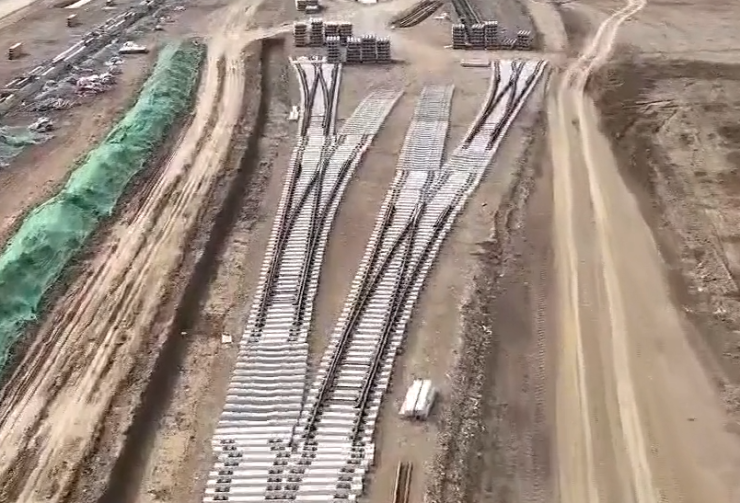 在龙拱港铁路专用线项目的施工现场,这个项目是提升济宁市多式联运能级的关键项目,主要建设9.23公里的铁路专用线,还包括装卸站、接轨站等配套设施,计划今年6月底前具备投用条件。