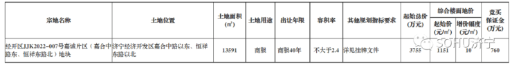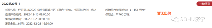 无竞买方报价!济宁经开区流拍1宗国有土地使用权