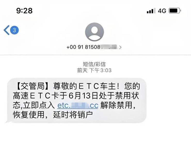 除了公共交通出行,也有不少网友通过自驾游来体验沿途中的美丽风景,而不法分子看准这点,直接向受害人发送”您已违章、ETC出现异常等,请点击链接进行处理”的虚假短信。