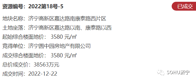 地块5:济宁高新区嘉达路南康泰路西片区【济宁圆中园房地产有限公司竞得】