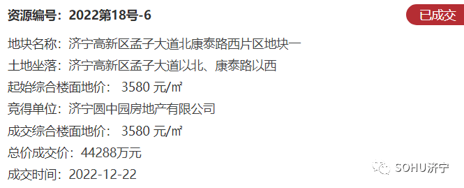 地块6:济宁高新区孟子大道北康泰路西片区地块一【济宁圆中园房地产有限公司竞得】