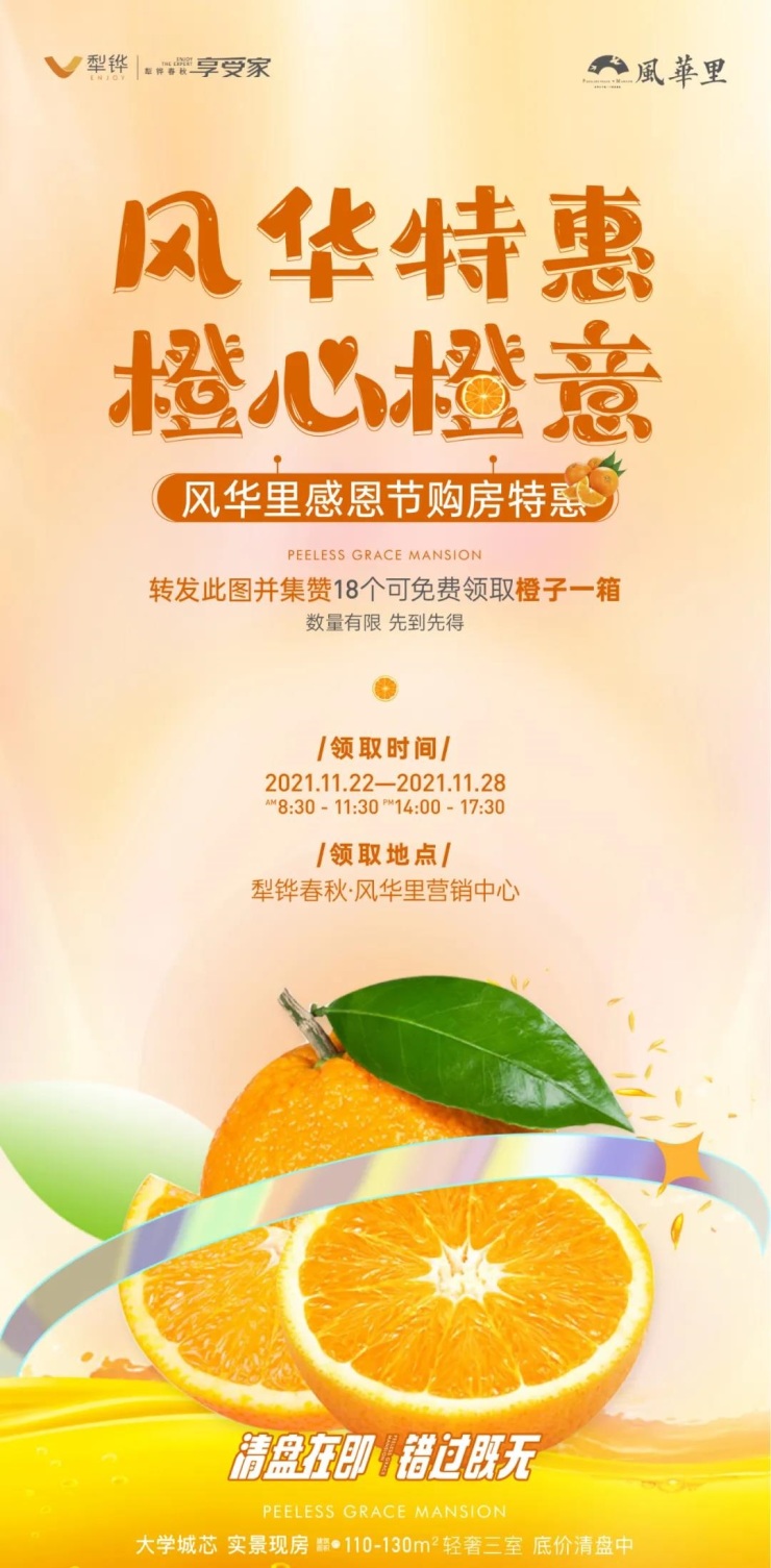 风华特惠,橙心橙意!犁铧春秋风华里感恩节购房特惠来袭