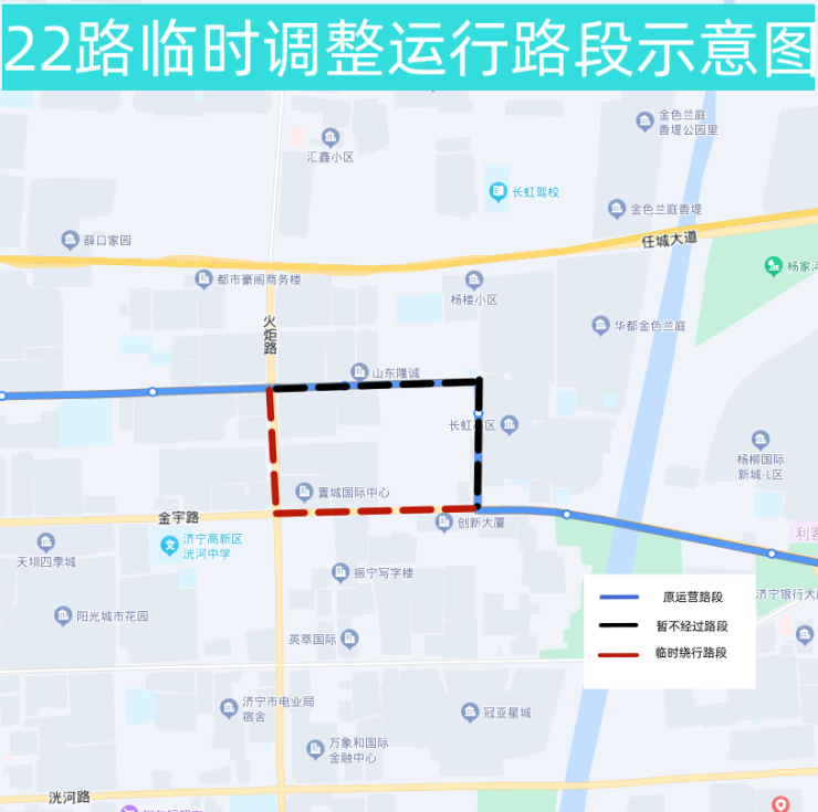 出行提示:济宁市主城区长虹路公交线路局部走向临时调整