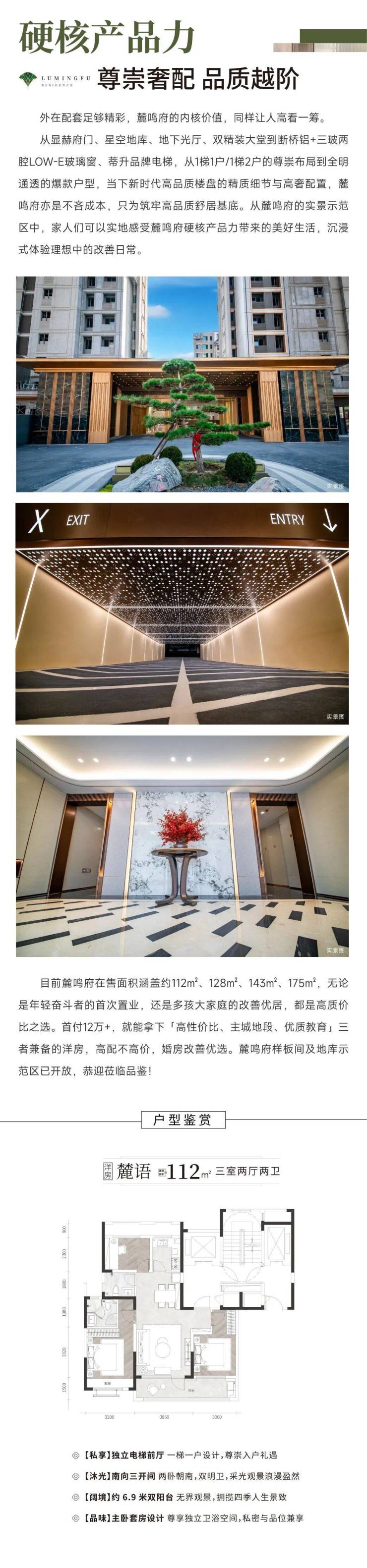 麓鸣府从显赫府门、星空地库、地下光厅、双精装大堂到断桥铝+三玻两腔LOW-E玻璃窗、蒂升品牌电梯,从1梯1户/1梯2户的尊崇布局到全明通透的爆款户型,当下新时代高品质楼盘的精质细节与高奢配置,麓鸣府亦是不吝成本,只为筑牢高品质舒居基底。从麓鸣府的实景