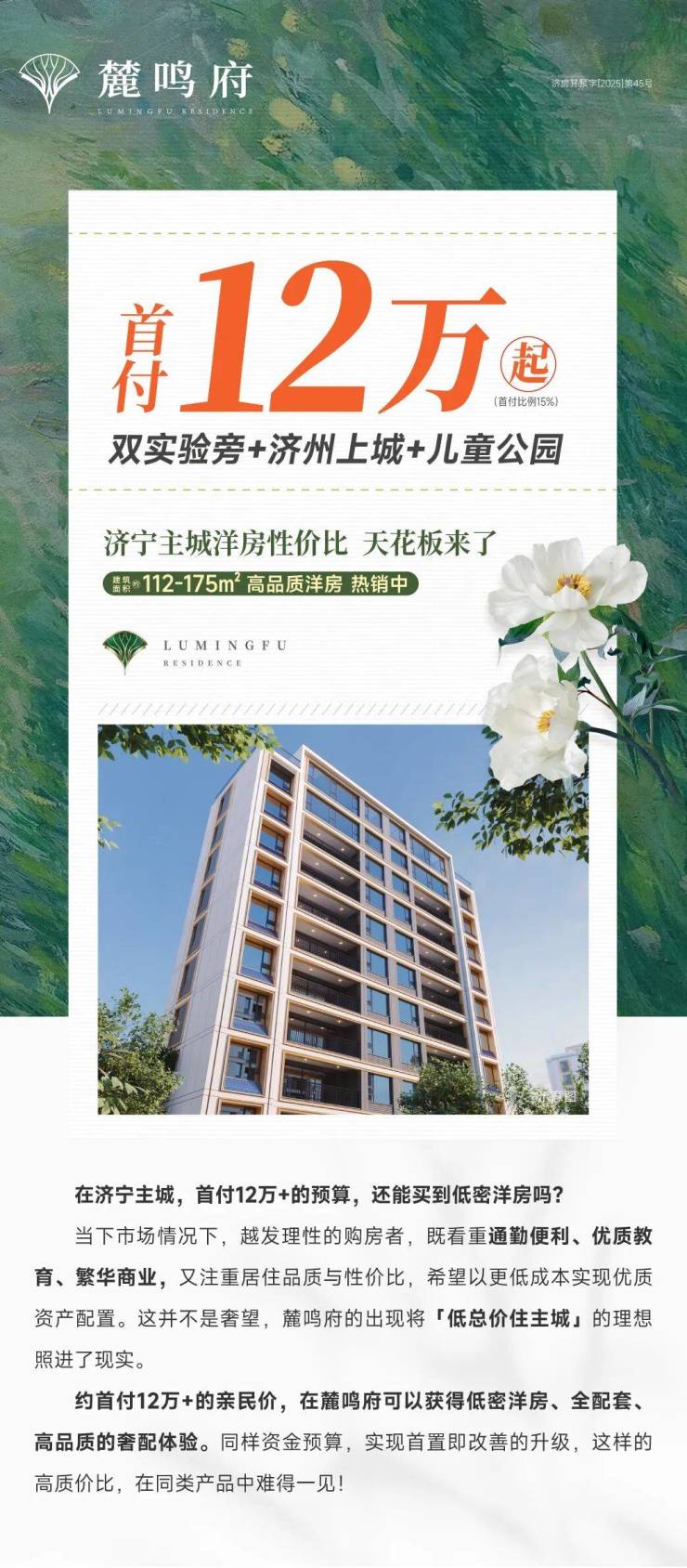 低密纯粹,舒适进阶!择居济宁麓鸣府醇熟生活触手可及