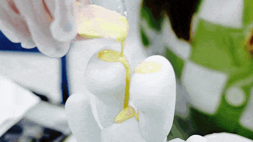 再将满满一杯颜料顺着熊体淋下去