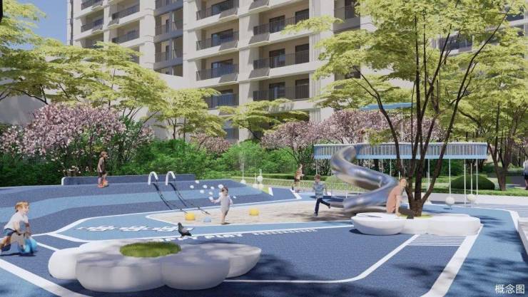 宸悦府以新中式园林整体布局,远观恢弘大气,近观婉约精致。五进归家礼序,百米仪式归家景观中轴、对称樱花树阵、约35米涌泉水景、特色流水景石;同时打造全龄绿化休闲功能区域,「天空棉花糖」儿童主题乐园、「400米跑道」、「康养健身」休闲空间,全家人在一个贴近自然的户外空间里,收获生活的满足和愉悦的心灵互动。让人们在小区封闭的日子,仍然有旷阔、怡情的室外活动空间,感受四季的自然风景。