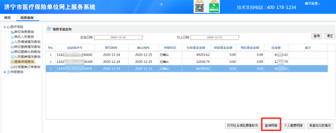温馨提示:单位完成缴费后才能通过以上路径查询或导出缴费明细数据!