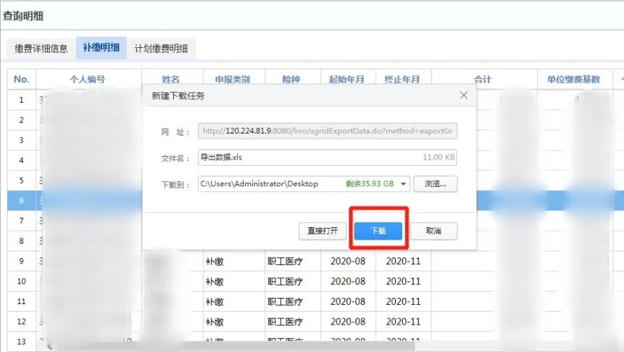 参保单位医保费补缴明细查询及导出操作说明