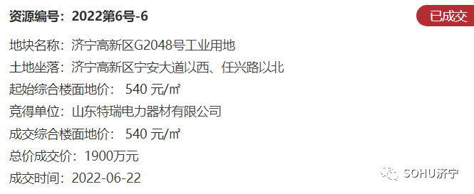 地块六:济宁高新区G2048号工业用地【山东特瑞电力器材有限公司拍得】