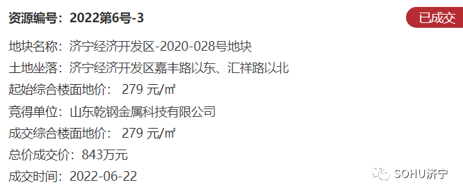 地块三:济宁经济开发区-2020-028号地块【山东乾钢金属科技有限公司拍得】