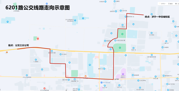 线路起止点:公交三分公司—济宁一中任城校区
