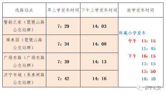 为进一步满足学生的出行需求,自2022年9月1日起,市公交集团将为济宁高新技术产业开发区科苑小学开通“助学公交”专线,特公告如下:
