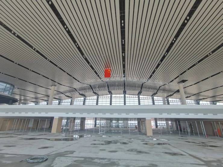 济宁新机场航站楼主体工程、金属屋面、玻璃幕墙及精装工程和综合办公区主体工程、幕墙工程及精装工程施工完成并通过竣工验收。飞行区跑道、站坪及联络道的灰土、山皮石、水稳已施工完成,跑道沥青封层完成50%。民航弱电工程和空管设备安装工程已进场开展施工;国外空管设备已全部进场,设备基础土方填筑完成。供油工程油罐主体和生产用房、消防泵房、隔油及事故污水处理池、化验室等主体结构全部完成,正在扫尾。西浦路拓宽北延至新机场工程建成通车,新机场场外供水、供电、燃气工程全部完成。