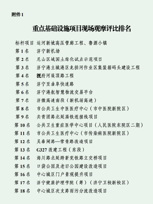 济宁市重点基础设施项目二季度观摩评比排名火热出炉