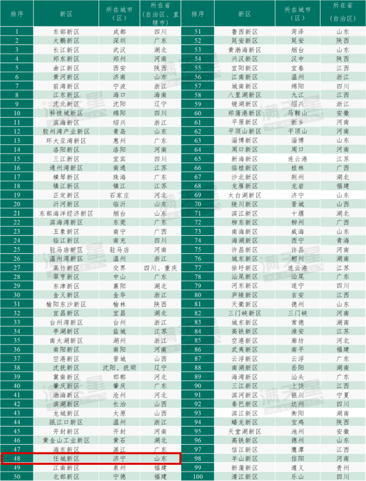 近日“城市新区发展潜力百强(2023)”名单公布,山东省新区占据12个席位,在所有省(自治区、直辖市)中数量最多。其中,任城新区位列第48位。