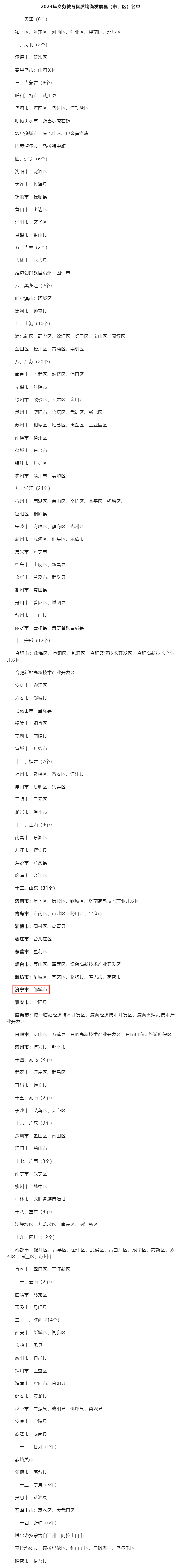 济宁1地入选!2024年义务教育优质均衡发展县(市、区)名单公布