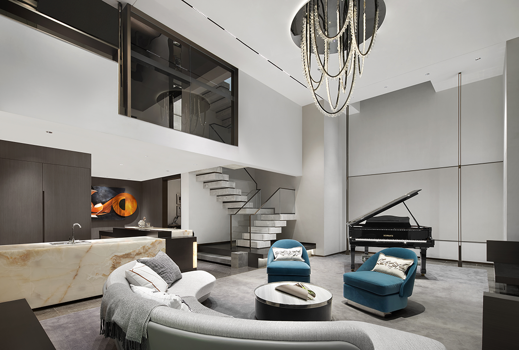 先谈谈排名前列个客厅吧。约8.8米开间,这是传统别墅尺度的新纪录,光与景,就这样全面贯入;约3.55米挑高,让空间压抑感消失不见,只觉这是通透通透再通透的巨大殿堂,这里,再也掩藏不住主人的身份和财力,在圈层的小传说中,你的访客一定把你讲的更传奇。